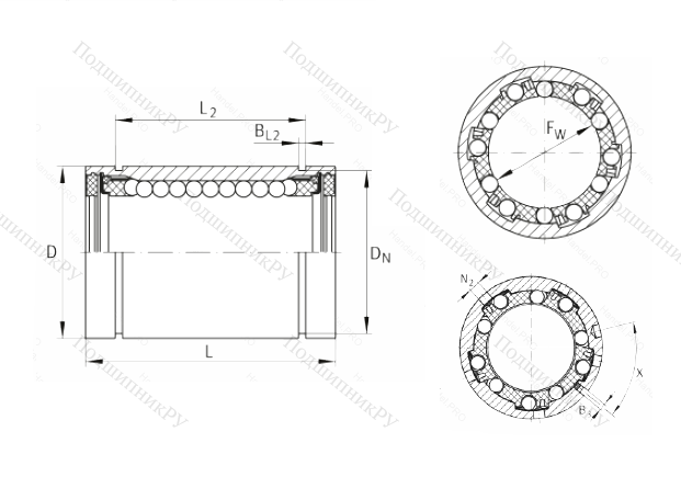 Конструкция представляет собой шариковую втулку с корзиной из пластика и стальным герметичным корпусом открытого типа, оборудованным специальными канавками для стопорного кольца, вулканизированным кольцом-уплотнителем, предотвращающим попадание загрязнений через коллектор и опорные дорожки.